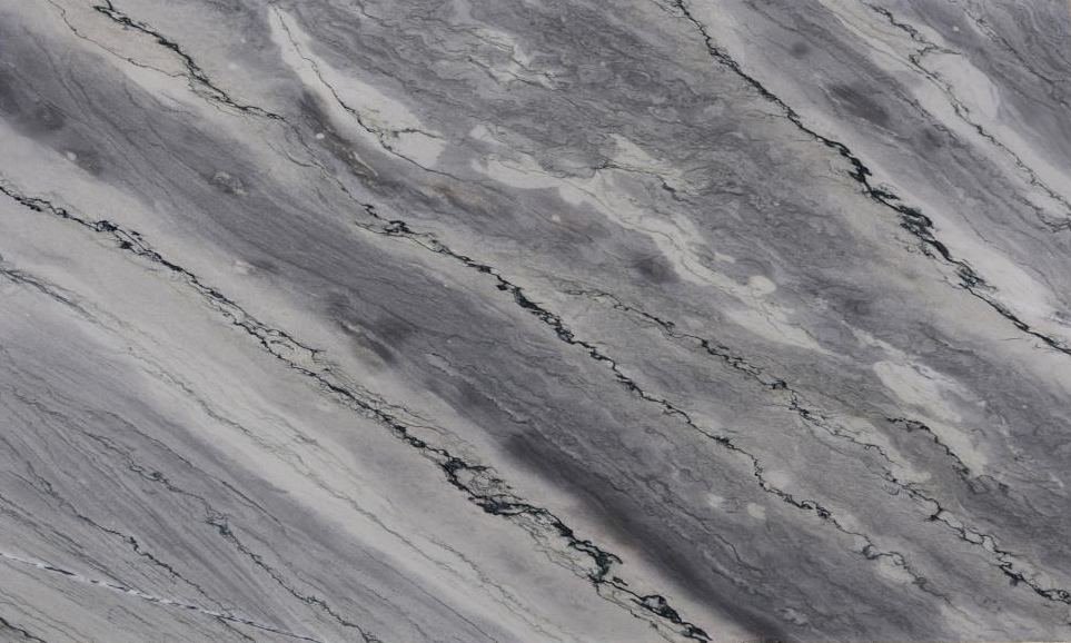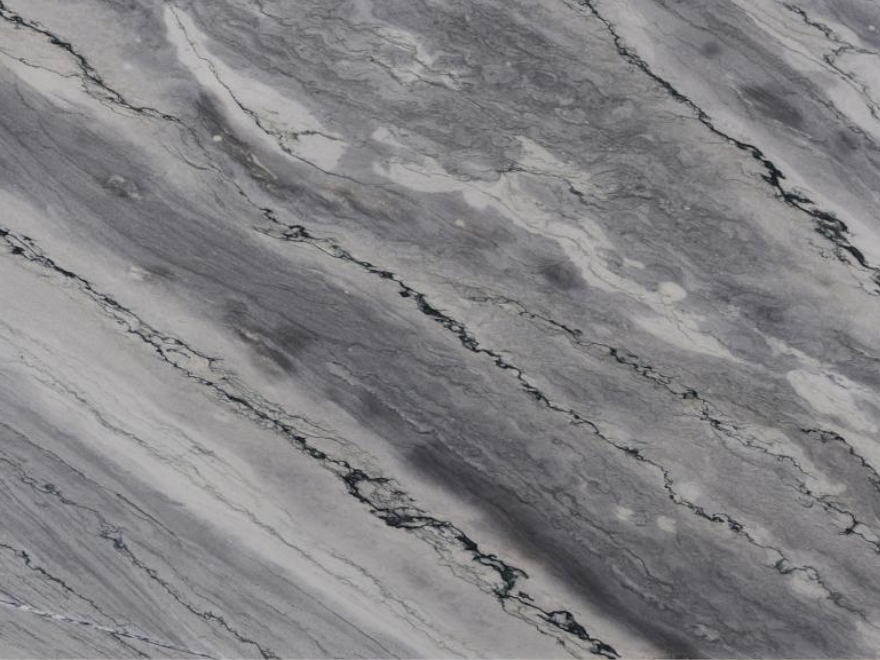 Nuvolato Granite is a mesmerizing natural stone that captivates with its striking and unique features. This exquisite granite slab showcases a dark gray base with delicate mossy green hues and subtle cream specks, resembling the earth's natural beauty. The stone's standout feature is its large veining pattern, reminiscent of a dry desert lake, adding a touch of drama and intrigue to its appearance. With its unparalleled character and sophisticated color palette, Nuvolato becomes a perfect choice for creating statement pieces such as kitchen countertops, bathroom vanities, and accent walls. It infuses any space with a sense of rugged elegance and natural allure, making it a remarkable centerpiece in any design scheme.